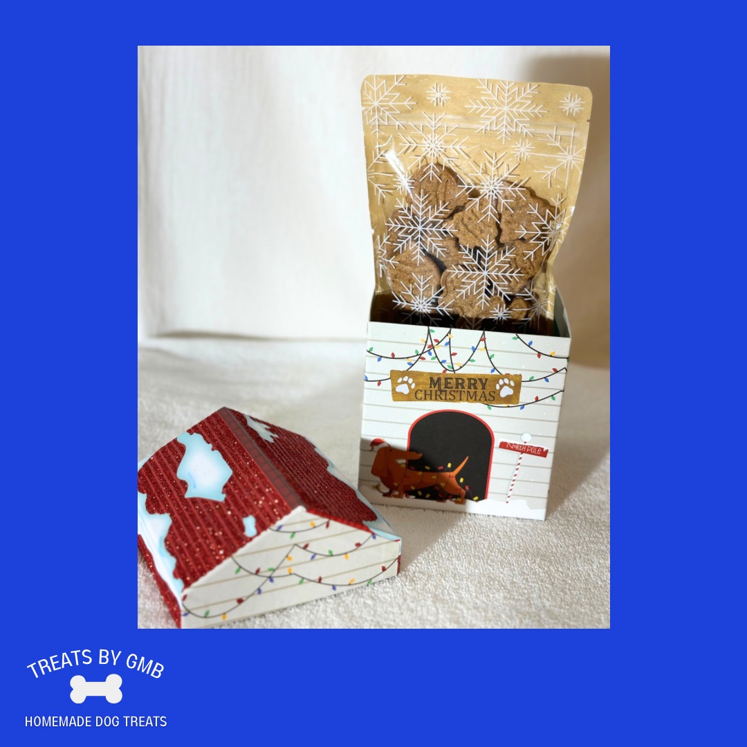 Boxed and ready to put under your tree for your beloved dog. This cute Doghouse is bundled with 1 bag of Treats! Customize your Box by selecting your treat flavor below.