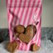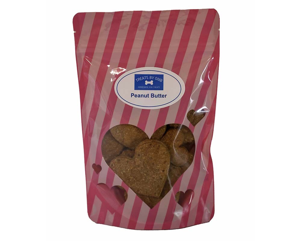Our Puppy Love Peanut Butter dog treats are crafted with high-quality, human grade ingredients that are easy to recognize and pronounce. Each treat is made with whole wheat flour, peanut butter, eggs and honey. The pink and white package includes 18 heart shaped pieces. The pieces are approximately 1 - 2 1/2 inches wide, perfect for rewarding your dog with a tasty snack. To maintain freshness, store the package in a cool, dry place. Our commitment to quality is underscored by our licensure with the Tennessee Department of Agriculture. We list all the ingredients and the guaranteed analysis on each label. As each beloved dog is unique and may have specific dietary needs, please review the ingredient list carefully and consult with your veterinarian if you have concerns about any sensitivities.