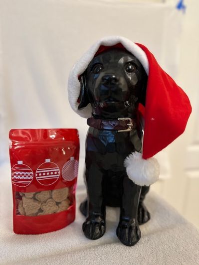 Available Now! - Our Happy Howlidays Peanut Butter dog treats are crafted with high-quality, human grade ingredients that are easy to recognize and pronounce. Each treat is made with whole wheat flour, peanut butter, eggs and honey. The red package includes 20 pieces of assorted designs – snowmen, gingerbread, ornaments and trees. The pieces are approximately 1 - 2 inches wide, perfect for rewarding your dog with a tasty snack. To maintain freshness, store the package in a cool, dry place. Our commitment to quality is underscored by our licensure with the Department of Agriculture. We list all the ingredients and the guaranteed analysis on each label. As each beloved dog is unique and may have specific dietary needs, please review the ingredient list carefully and consult with your veterinarian if you have concerns about any sensitivities.